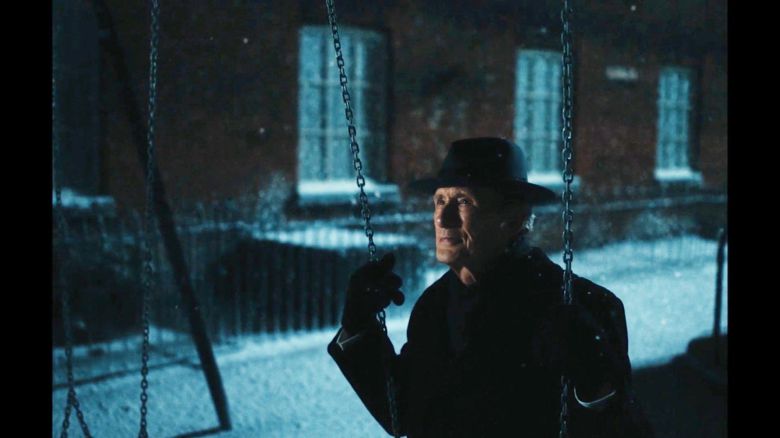 영화 ‘리빙: 어떤 인생’에선 삶이 얼마 남지 않은 주인공이 눈 오는 밤 홀로 그네를 타며 인생의 아름다움을 노래한다. 티캐스트제공 |