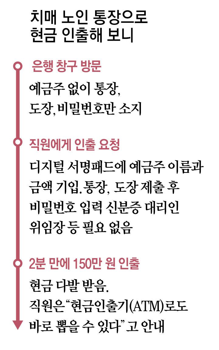 치매노인 통장-도장 내미니… 제3자도 2분만에 150만원 인출