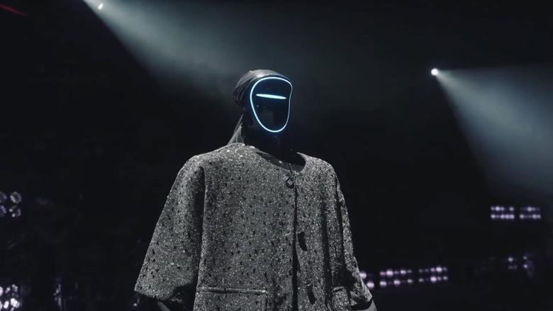 반짝이 의상을 걸친 로봇 6대가 콘서트 무대에 오릅니다.