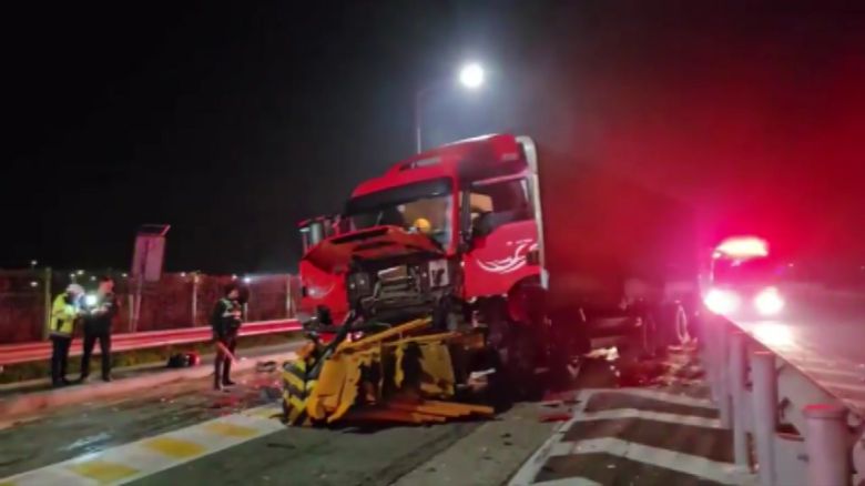 호남고속도로서 화물차가 충격흡수대 들이받아...운전자 다쳐