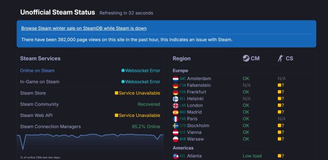 이용자들은 X에 불편을 토로했다. 한 이용자는 “스팀에서 물건을 사려는 순간 서비스가 중단됐다”고 적었다. 이번 장애의 원인과 복구 시점은 공개되지 않았다.