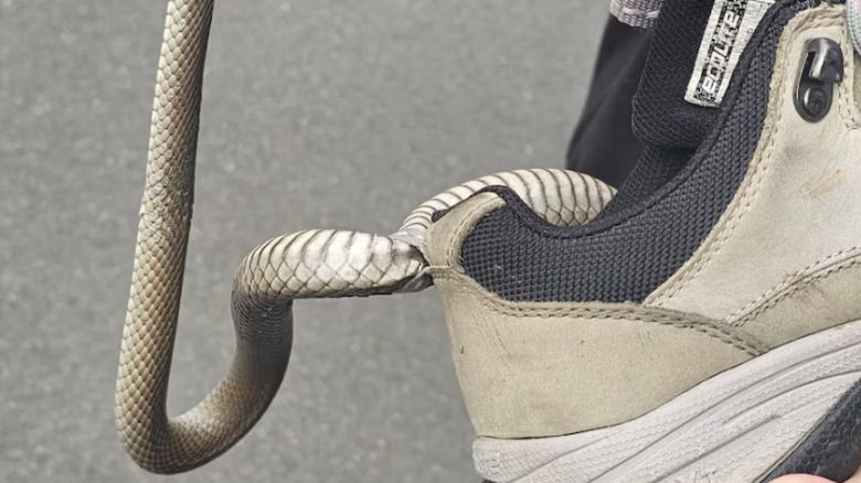 뱀이 운동화 뒤쪽 고리에 걸려 위험한 상황에서도, 이 여성은 침착함을 유지해 화제를 모았습니다.