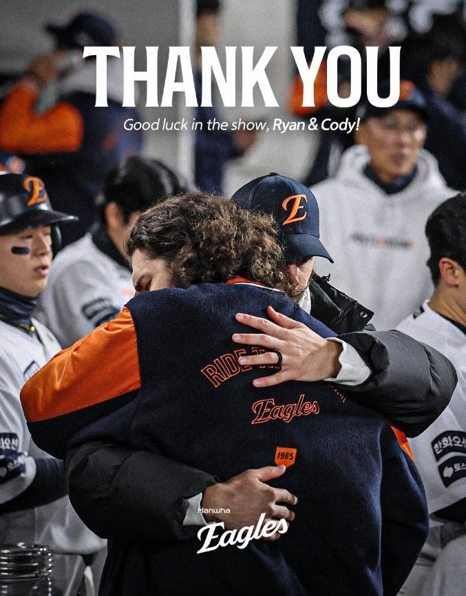 [서울=뉴스핌] 박상욱 기자 = 한화가 24일 SNS에 코디 폰세와 라이언 와이스에 전한 작별 인사 게재물. [사진=한화 이글스] 2025.12.25 psoq1337@newspim.com