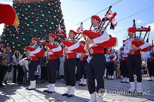 (UPI=연합뉴스) 24일 요르단강 서안 지구 베들레헴에서 크리스마스 퍼레이드가 진행되고 있다. |