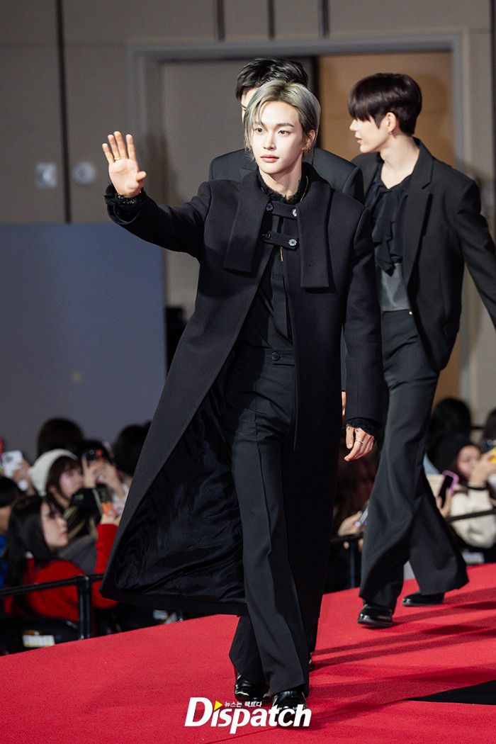 '라이즈' 원빈은 블랙 코트로 멋을 냈다. 잘생긴 비주얼이 시선을 사로잡았다.