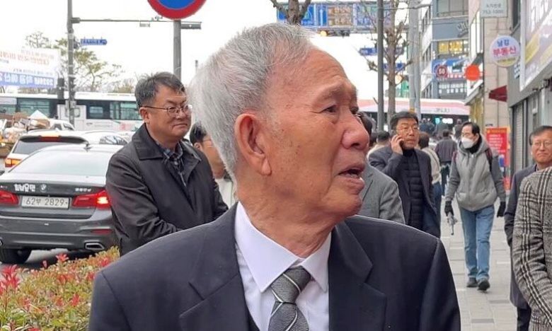 죽 늘어선 중년 남성들의 열창이 이어지자 이를 바라보던 한 노년 남성의 얼굴에 울음이 번졌다. 자신이 세운 명신고등학교를 국가에 헌납하는 등 경남 진주시에서 수십 년간 기부와 선행을 이어온 김장하(81) 선생이다.