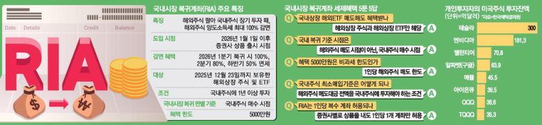 정부가 24일 발표한 '국내시장 복귀계좌(RIA)'에 대한 투자자들의 관심이 뜨겁다. 그동안 서학개미는 연간 매매차익 250만원까지만 비과세 혜택을 받았다. 하지만 내년 1분기 중 RIA가 도입되면 해외주식을 5000만원까지 매도한 후 국내주식시장에 1년 이상 투자하면 해외주식 양도소득세를 전액 면제받을 수 있다.