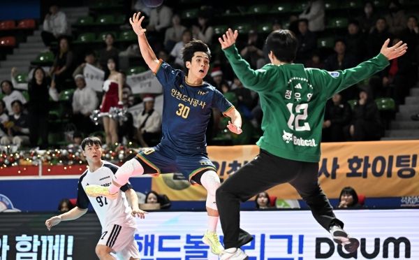 인천도시공사는 25일 오후 6시 충청북도 청주시 SK호크스 아레나에서 열린 신한 SOL Bank 2025-26 핸드볼 H리그 남자부 2라운드 최종전에서 두산을 32-29로 꺾었다.