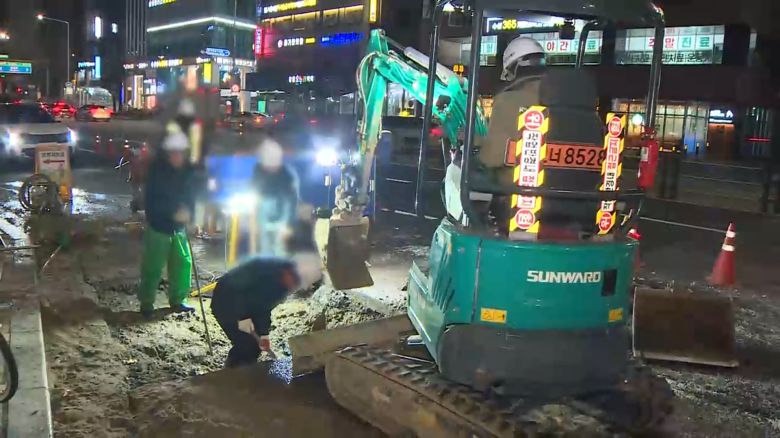 강동구는 빗물받이를 열어 도로에 고인 물을 빼고, 도로에 염화칼슘을 살포하는 등 복구 작업을 진행했습니다.