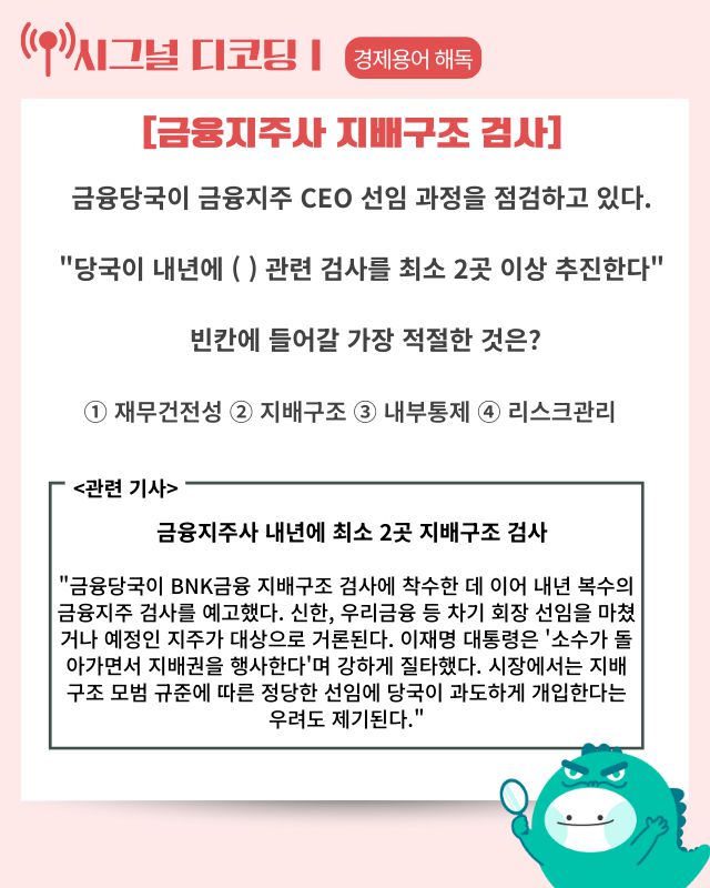 ▶ 기사 바로가기: “금융지주사 내년에 최소 2곳 지배구조 검사”