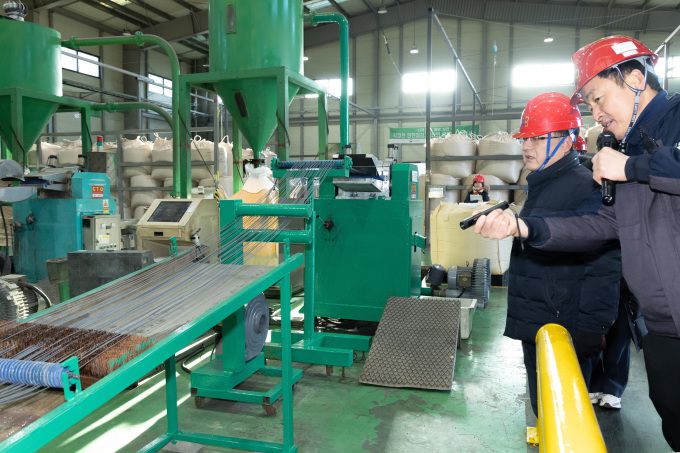 김성환 기후에너지환경부 장관(왼쪽)이 26일 경기도 화성시에 위치한 플라스틱 폐기물 회수·재활용 업체를 방문해 현장을 점검하고 있다. [사진=기후에너지환경부] 2025.12.26 dream@newspim.com |