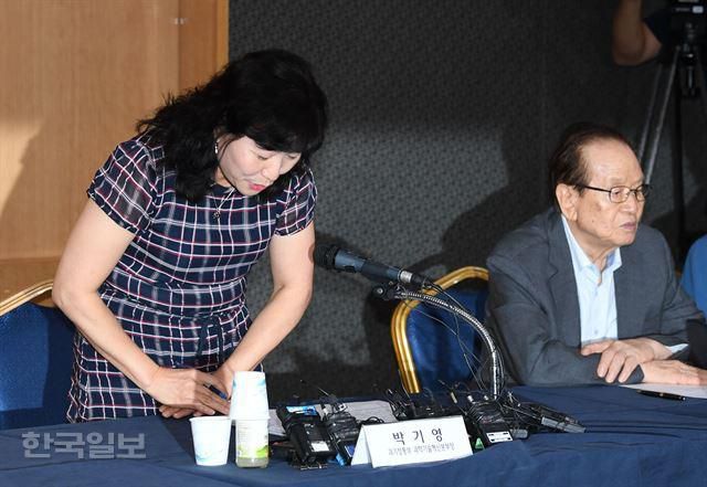 박기영 과학기술혁신본부장이 2017년 8월 10일 서울 역삼동 과학기술회관에서 열린 정책간담회에 황우석 사태와 관련해 사과하며 머리를 숙이고 있다. 황우석 사태 후 11년 만의 사과였다. 한국일보 자료사진 |
