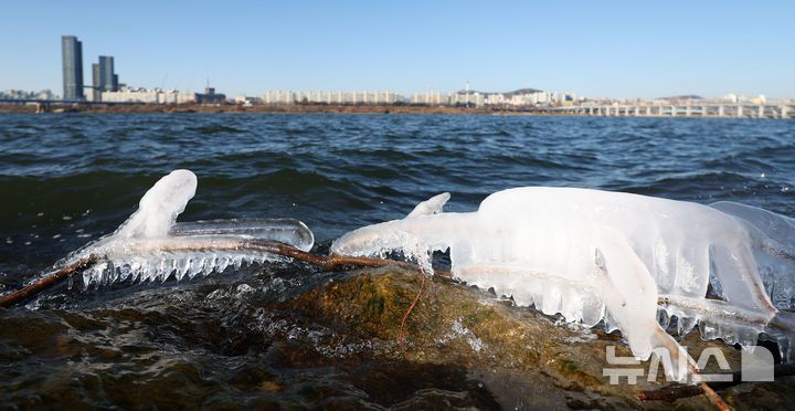 [서울=뉴시스] 김선웅 기자 = 서울 최저기온이 -12도를 기록하며 올해 첫 한파주의보가 발효된 26일 서울 서초구 반포동 한강변에 얼음이 얼어있다. 2025.12.26. mangusta@newsis.com |