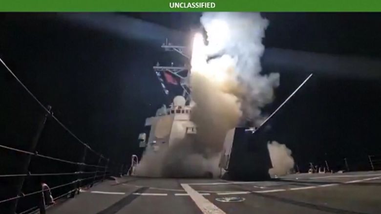 미군 함정에서 잇따라 미사일이 발사됩니다.