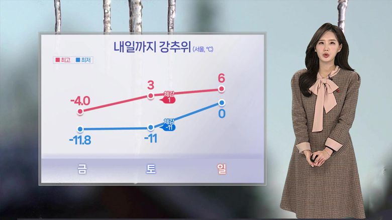 특히 중부와 전북, 경북을 중심으로 -10도를 밑돌겠고, 서울도 -11도로 출발하겠습니다.