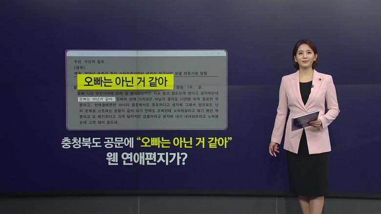 이에 대해 충북도는 "담당자가 개인 메시지를 복사한 상태로 붙여넣었고, 글자를 흰색 처리해 전자문서상 보이지 않아 결재 과정에서 걸러지지 않았다"고 해명했습니다.