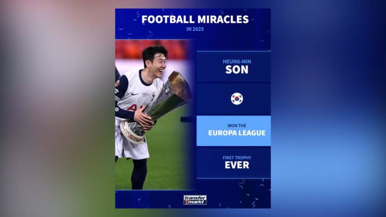 독일 축구 전문 매체 '트랜스퍼마르크트'는 '2025년 축구계 8대 기적'을 선정하면서 손흥민의 유로파리그 우승을 포함했습니다.