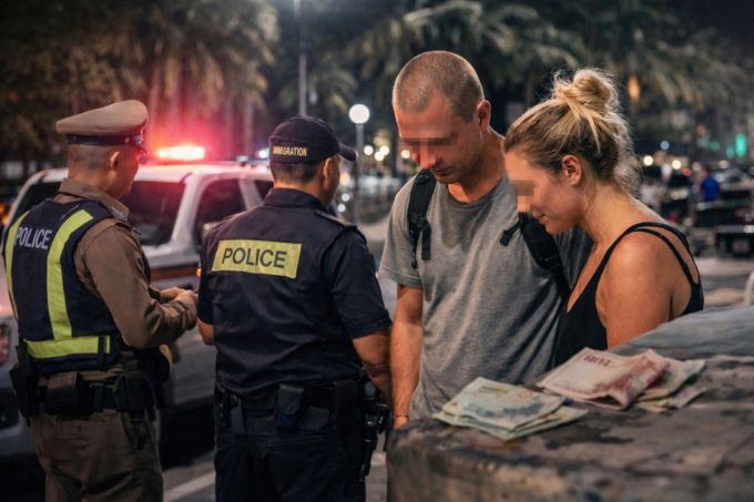 태국 휴양지 파타야 길거리에서 성행위를 한 러시아 국적의 남녀가 경찰에 붙잡혔다. 사진은 기사 내용을 토대로 AI(인공지능)을 활용해 만든 이미지./사진=오픈AI 챗GPT