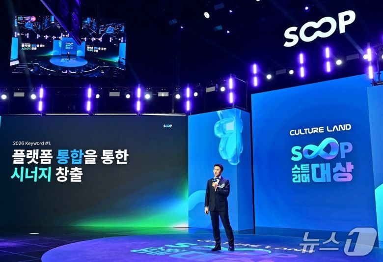 최영우 SOOP 대표는 이번 행사에서 2026년 사업 핵심 키워드로 플랫폼 통합, AI 서비스 고도화, 콘텐츠 제휴·지원 강화를 제시했다.
