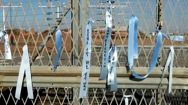 리본에는 지난해 12월 29일 여객기 사고로 세상을 등진 희생자의 넋을 기리는 글이 기록돼 있습니다.