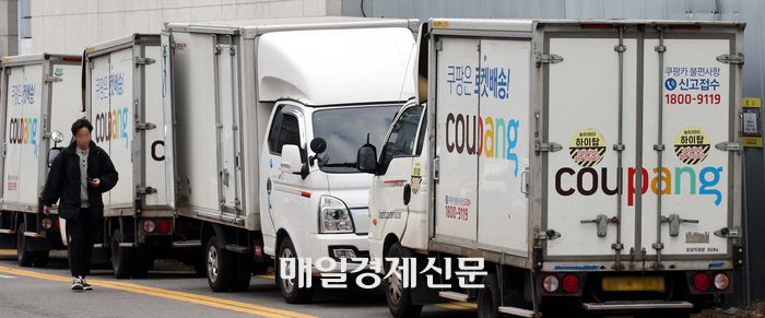 김범석 쿠팡 의장이 공식 사과문을 발표한 28일 서울시내 한 쿠팡 물류센터에 배송트럭이 주차돼 있다. 김재훈 기자