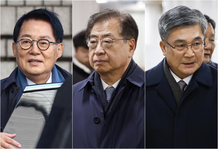 서울중앙지법 형사합의25부(재판장 지귀연)는 지난 26일 직권남용 권리행사 방해 등 혐의로 기소된 서훈 전 청와대 국가안보실장(왼쪽 사진), 박지원 전 국가정보원장(가운데), 서욱 전 국방부 장관(오른쪽), 김홍희 전 해양경찰청장, 노은채 전 국정원장 비서실장 등에 대해 모두 무죄를 선고했다.