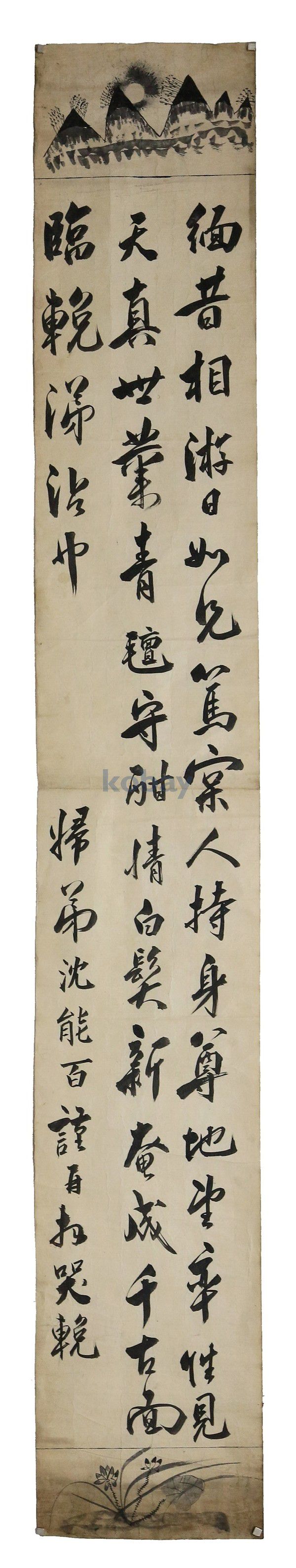 만장 상단의 그림들은 문자 그 이상의 메시지를 던진다. '오봉(五峯)과 그 너머로 사라지는 태양'은 생의 마감을 상징하는 고도의 은유다. 산맥은 변치 않는 세상의 질서를, 지는 해는 거스를 수 없는 생자필멸(生者必滅)의 섭리를 보여준다. 또한 나뭇가지에 앉아 홀로 울고 있는 새는 심능백이 시에서 읊조린 "눈물이 소매를 적시네"라는 비애의 시각적 발현이다. 그는 만사에서 고인을 '독실한 사람'이자 '천진함을 간직한 이'로 묘사했다. 갑자기 아득한 존재가 되어버린 망자를 향한 그리움이 묵직한 필치와 그림 속에 녹아들어, 시대를 초월한 보편적 공감을 불러일으키고 있다.