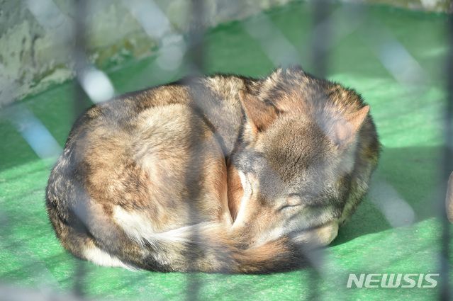 【대구=뉴시스】우종록 기자 = 대구 아침 최저기온 영하 7도를 보인 9일 오후 대구 중구 달성공원에서 늑대가 따뜻한 햇볕을 쬐며 낮 잠을 청하고 있다. 사진은 해당 기사와 관련없음. 2019.01.09. wjr@newsis.com