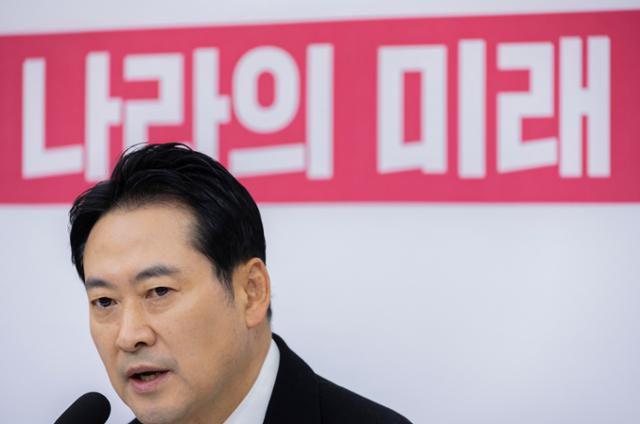 장동혁 국민의힘 대표가 28일 국회에서 기자간담회를 열고 통일교 특검을 비롯한 국정현안에 대해 입장을 밝히고 있다. 연합뉴스 |