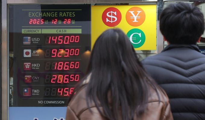 28일 오전 서울 중구 명동 환전소 전광판에 원/달러 환율 시세가 나오고 있다. /사진=뉴스1 |