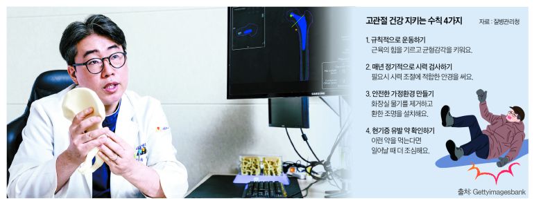 A : “고관절은 몸의 중심을 지탱하는 관절이라 한 번 망가지면 일상으로의 복귀가 쉽지 않다. 거동이 어려워져 장기간 침대에 누워 지내야 하는데 이 과정에서 욕창이나 혈전증 같은 합병증이 도미노처럼 찾아온다. 특히 70대 이상 고령층은 누워 있는 기간 동안 근육 소모가 빠르게 진행된다. 운 좋게 회복해도 예전처럼 활기찬 일상을 되찾기 어려울 수 있다.”