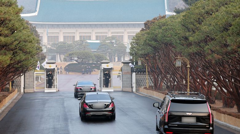 청와대로 들어서는 이재명 대통령의 차량 행렬이 보이고 있습니다.