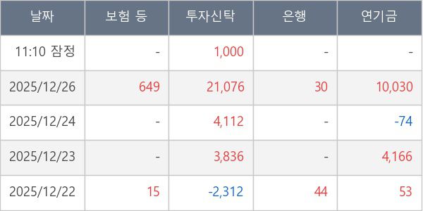 ※ 사모펀드 등 일부 기관의 순매매량은 표시되지 않음