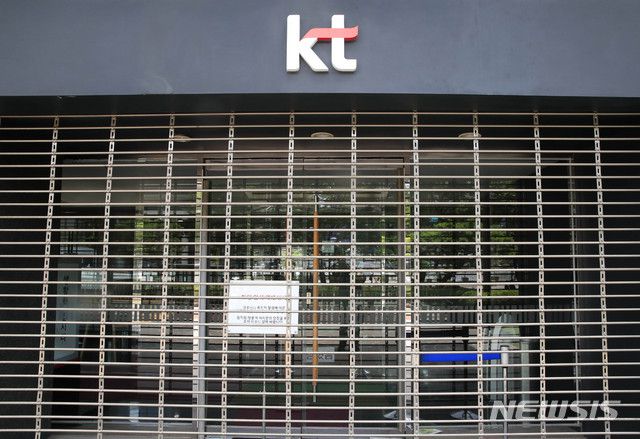 [서울=뉴시스] 박민석 기자 = 서울 종로구 KT 웨스트 사옥 출입문의 셔터가 내려가 있다. 2020.07.05. mspark@newsis.com
