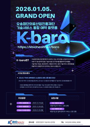 주요 기술서비스 분야는 ▷기술지원 ▷첨단연구장비 활용지원 ▷비임상지원 ▷GMP 생산 ▷시험검사서비스 등으로, 사용자는 공식 홈페이지(www.kbiohealth.kr/baro)를 통해 상담 신청부터 결과 확인까지 전 과정을 한눈에 파악할 수 있다.