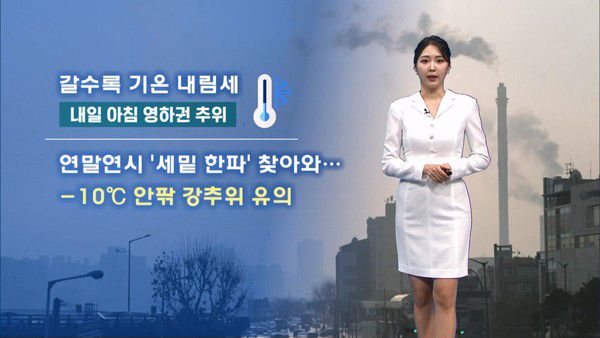 내일 아침기온 영하권으로 뚝 떨어지겠고, 연말과 연초 사이에는 세밑 한파가 찾아오며 강추위가 본격화되겠으니 추위에 대비해주시기 바랍니다.