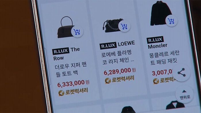 쿠팡 알럭스에서 추천하는 명품 가방과 의류는 수백만 원대, 그나마 살 수 있는 건 2~3만 원대인 립밤, 립스틱 정도입니다.
