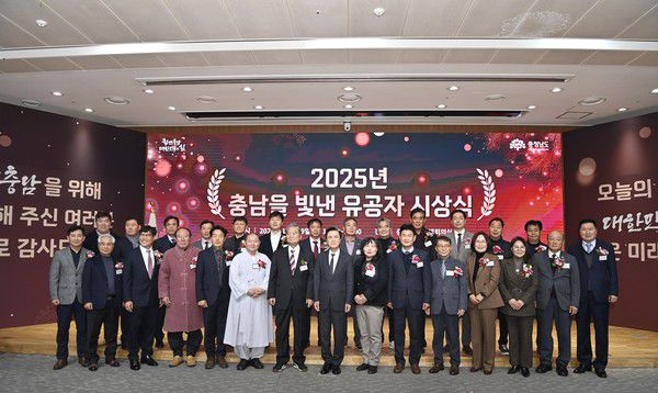 도는 29일 도청 대회의실에서 김태흠 지사와 수상자 등 100여 명이 참석한 가운데 2025년 충남을 빛낸 유공자 시상식을 개최했다.