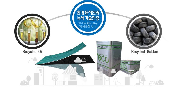 뉴케어공법의 핵심 재료인 ‘케어씰(CARE SEAL)’은 무용제형 변성 우레탄계 도막방수재로, 고점착과 유연한 특성을 통해 국내 우레탄계 방수재로는 최초로 KS F 4935(점착 유연형 고무 아스팔트계 누수보수용 주입형 실링재) 시험성적서를 확보했으며, 폐자원을 재활용한 다층형 ‘케어시트(CARE SHEET)’와 함께 ‘자원순환성 향상, 유해물질 감소’의 사유로 환경표지인증, 녹색기술인증, 녹색제품인증 등 3종의 친환경 인증을 획득했다.