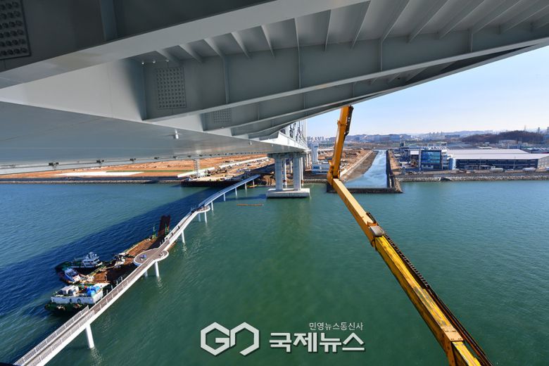 (인천=국제뉴스) 안희영 기자 = 인천광역시(유정복 시장)는 30일 제3연륙교 공사현장에서 영종도와 청라를 잇는 제3연륙교현장프레스투어를 가졌다. 제3연륙교는 2026년 1월 4일 개통식과 야간점등식을 갖고 5일부터 일반인 개통에 들어간다. 4,681m의 제3연륙교는 왕복 6차로, 자전거 도로, 보도 등으로 구성하여 2021년 12월 14일부터 2026년 3월 31일까지 51개월 공사기간과 사업비 6,500억원, 세계최고높이 해상교량전망대로 기네스기록에 등재되어 개통 전부터 이목을 끌고 있다.