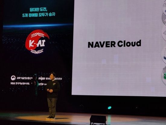 성낙호 네이버클라우드 하이퍼스케일 AI 기술총괄은 30일 서울 코엑스에서 열린 과학기술정보통신부 '독자 AI 파운데이션 모델' 프로젝트 1차 발표회에서 발표하고 있다. 사진=박유진 기자 |