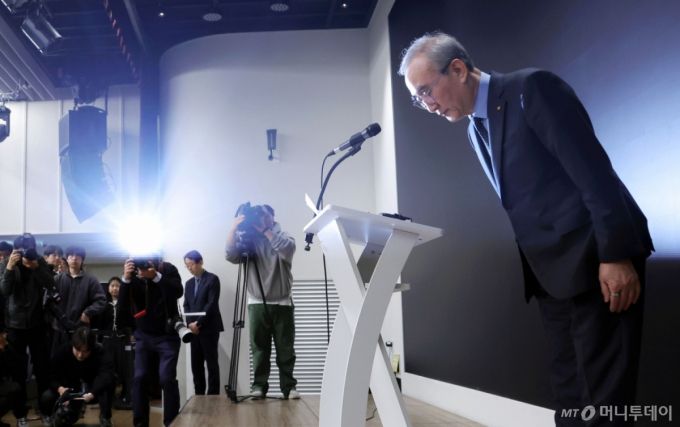 [서울=뉴시스] 홍효식 기자 = 김영섭 KT 대표이사가 30일 오후 서울 종로구 KT 광화문빌딩 웨스트 사옥에서 소액결제 피해 및 침해사고와 관련해 사과를 하고 있다. 2025.12.30. /사진=홍효식 |