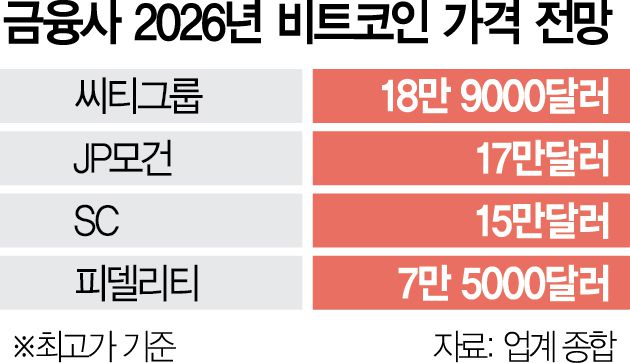 연말 랠리 실종에 추가 하락에 대한 우려도 나오고 있지만 시장에서는 내년 비트코인이 사상 최고가를 기록할 수 있다는 장밋빛 전망을 내놓고 있다. 씨티그룹과 JP모건은 내년 비트코인 최고가로 각각 18만 9000달러와 17만 달러를 제시했다. 그레이스케일은 내년 상반기 중 최고가를 찍을 것이라는 분석을 내놓았다.