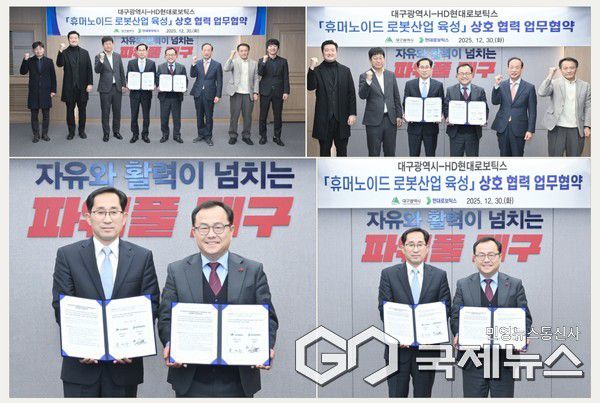 대구광역시에 따르면, " 30일 산격청사 제1대회의실에서 국내 로봇 시장 점유율 1위 기업인 HD현대로보틱스와 '휴머노이드 로봇 산업 육성'을 위한 업무협약(MOU)을 체결했는 데 이번 협약은 대구시와 HD현대로보틱스가 협력해 지역경제의 핵심 성장 동력으로 육성 중인 휴머노이드 로봇 산업의 저변을 확대하고, 관련 생태계를 조성하는 중요한 첫걸음이다."라고 전했다.