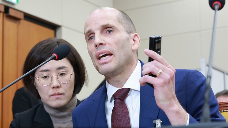 ▲ 30일 국회에서 열린 쿠팡 청문회에서 해롤드 로저스 쿠팡 대표이사가 최민희 과학기술정보방송통신위원회 위원장의 동시통역기 착용 요구에 답변하고 있다.