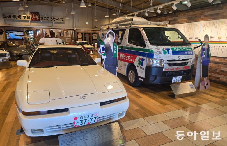 19일 일본 나라의 자동차박물관에 다카이치 사나에 총리가 22년 동안 탔던 스포츠카(왼쪽), 그가 집권 자민당 총재 선거 때 전국을 함께 누볐던 유세 차량이 전시돼 있다. 나라=황인찬 특파원 hic@donga.com |