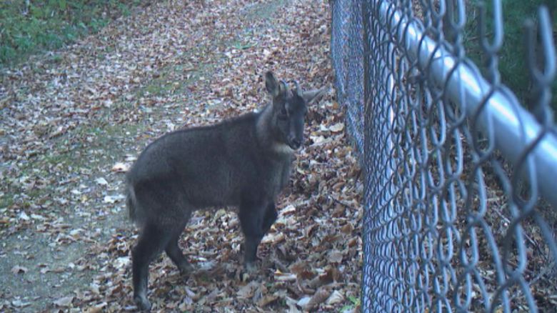 울타리에 둘러싸여 섬처럼 고립된 산비탈에서 살아남은 산양 가족이 포착됩니다.
