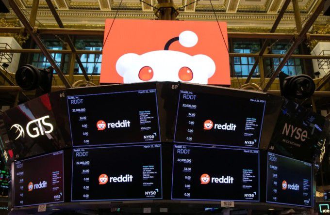 미국 뉴욕증권거래소 디스플레이에 표시된 레딧 로고 [사진=블룸버그통신]