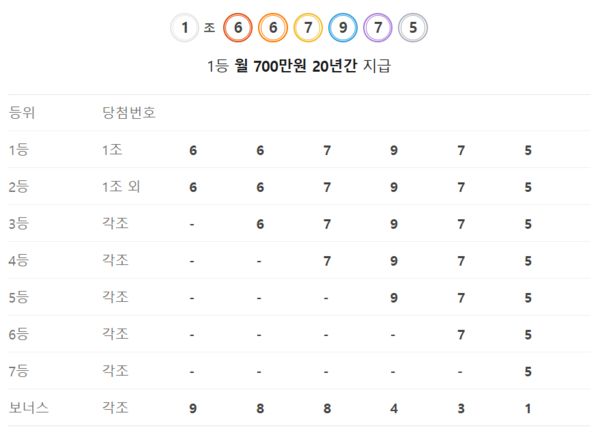 지난 295회차 1등 당첨번호는 " 3조 751272 "이다. 보너스번호는 " 각 조 290334 "이다.