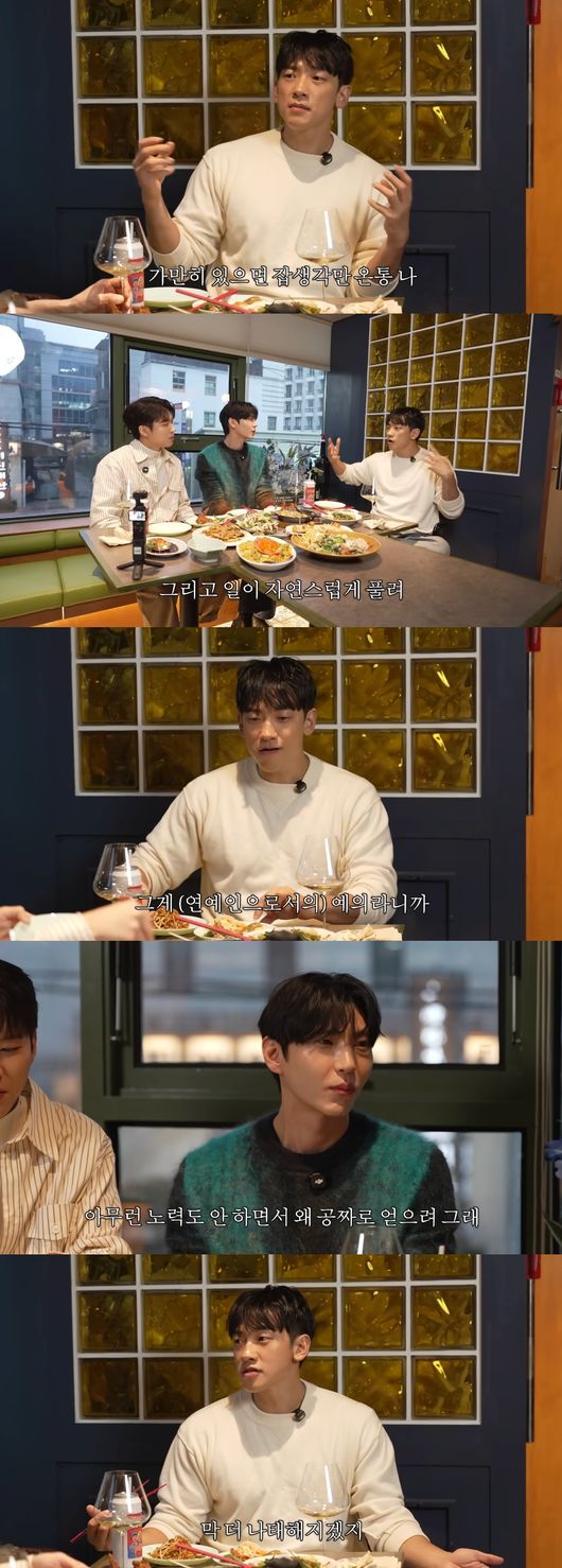 이에 레오는 언제까지 해야 할지 모르겠다고 털어놨고, 비는 "네가 이 업계에 있으면 죽을 때까지 해야 한다. 그게 (연예인으로서의) 예의다"라며 "아무런 노력도 안 하면서 왜 공짜로 얻으려고 하냐. 너를 닳고 닳고 닳게 해야 보상을 해주는 거다. 그래야 더 달지 않냐"라고 말했다.